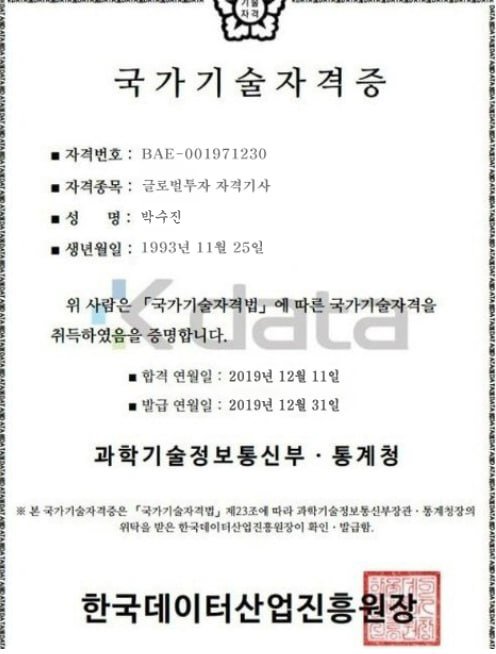 간단히 제 소개를 해드리면 한국자격검정평가진흥원에서 주관하는